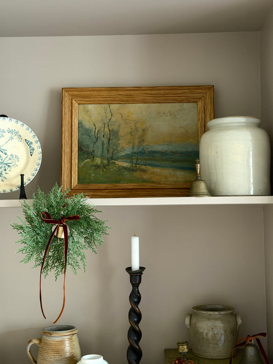 French Oak Framed River Scene Landsape Oil Painting