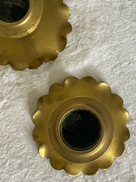Vintage Pair of Valpeltro Italian Etain 95 Pewter Small Candlestick Holders - Set of Two