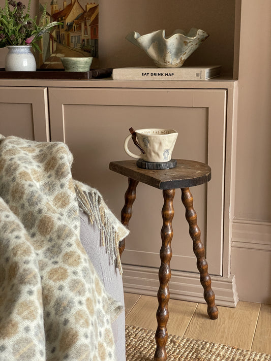 Medium Vintage French Wooden Milking Stool with Bobbin Legs