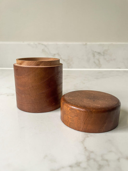 Vintage Turned Cylindrical Wooden Pot with Lid