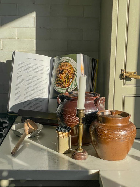 Vintage Victorian 1860 Brown Salt Glazed Lidded Storage Pot with Handles