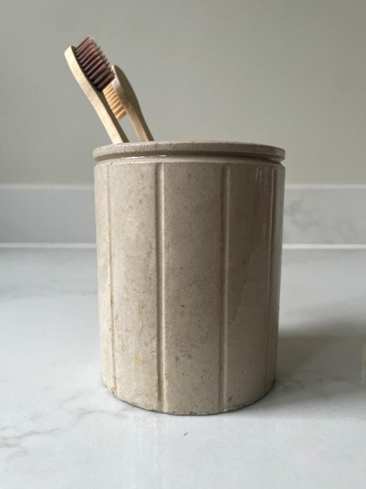 Vintage Victorian Stoneware Pot Beige Toothbrush Holder