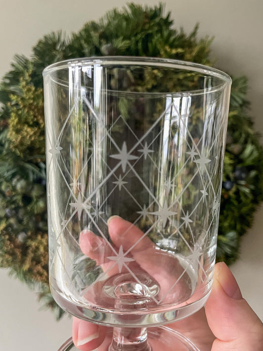 Full set of 6 Vintage French Luminarc Glasses Embossed with White Stars