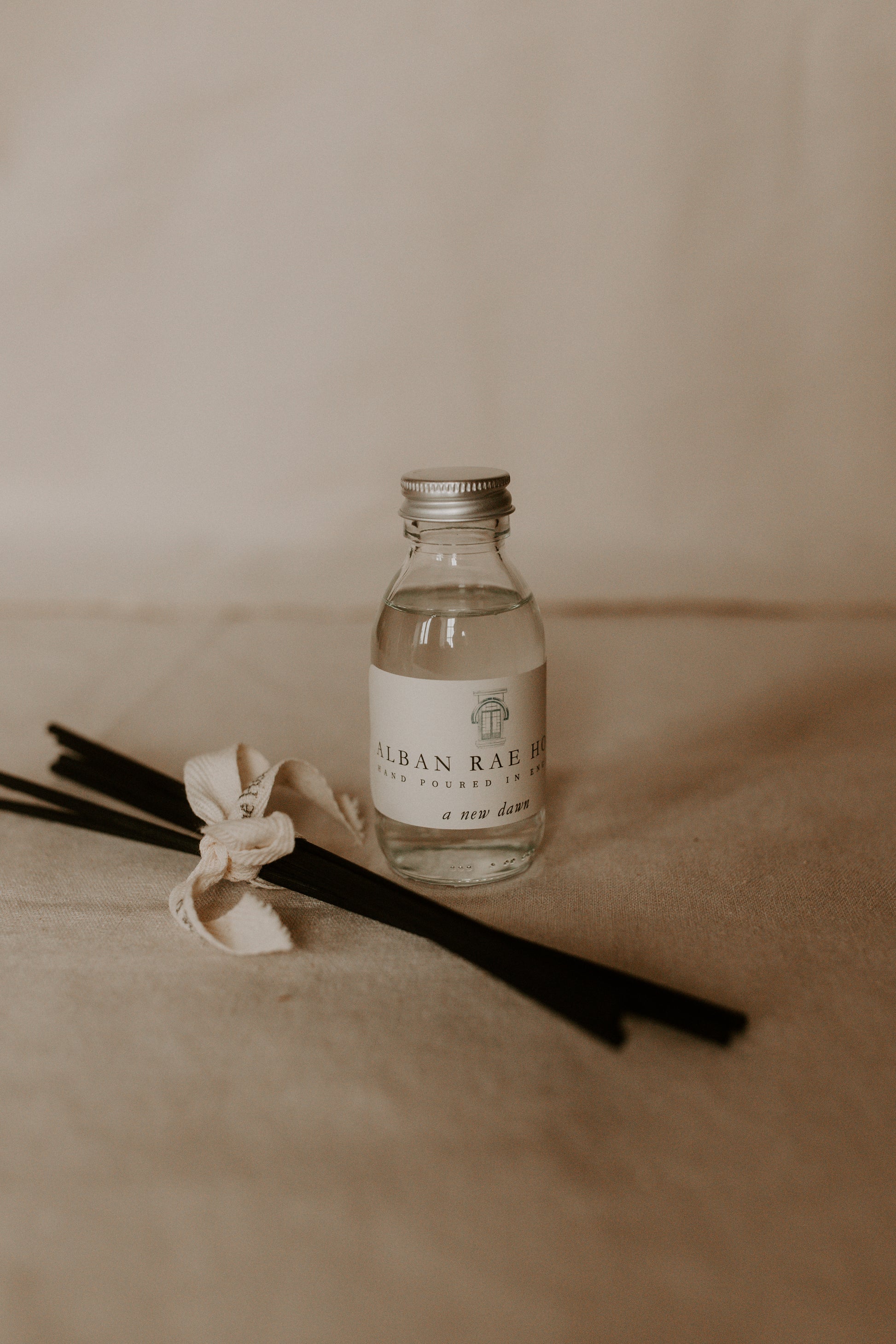 Each reed diffuser refill is thoughtfully packaged in our handmade, reusable linen sleeves—perfect for repurposing. For a beautifully considered touch, we recommend pairing them with our salvaged Victorian stoneware reed diffuser bottles, breathing new life into timeless pieces. Refresh your reed diffuser, take a deep breath, and welcome a new dawn.