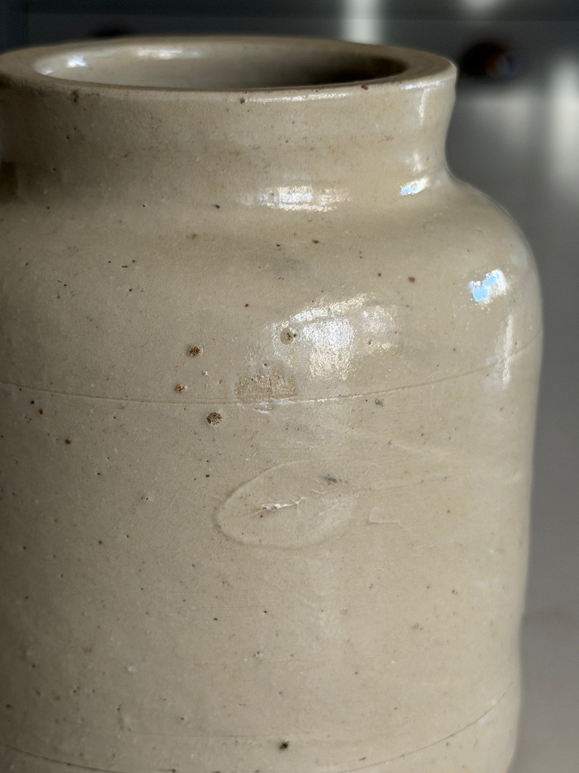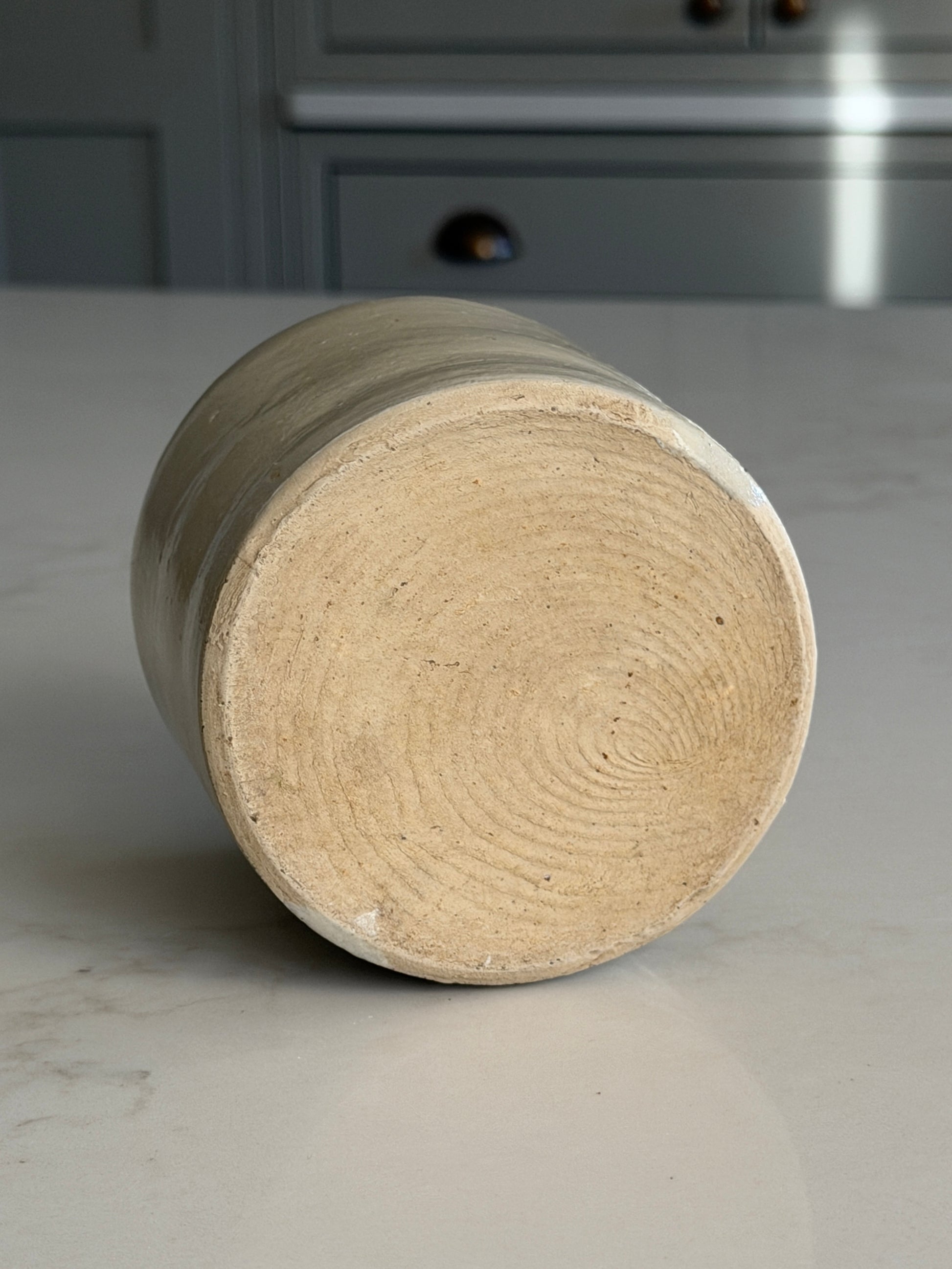 A timeless French mustard pot with a soft greige glaze and organic texture. Its gently rounded form and subtle tones give it a classic country farmhouse feel.