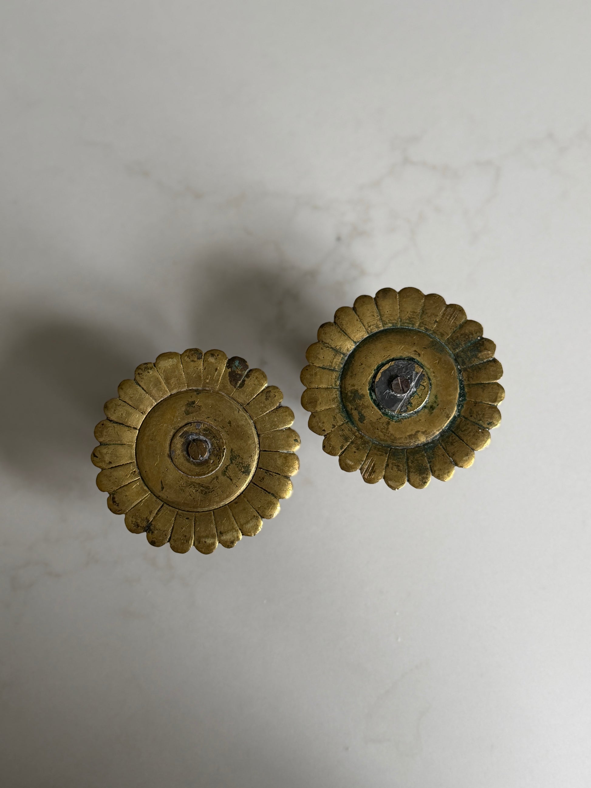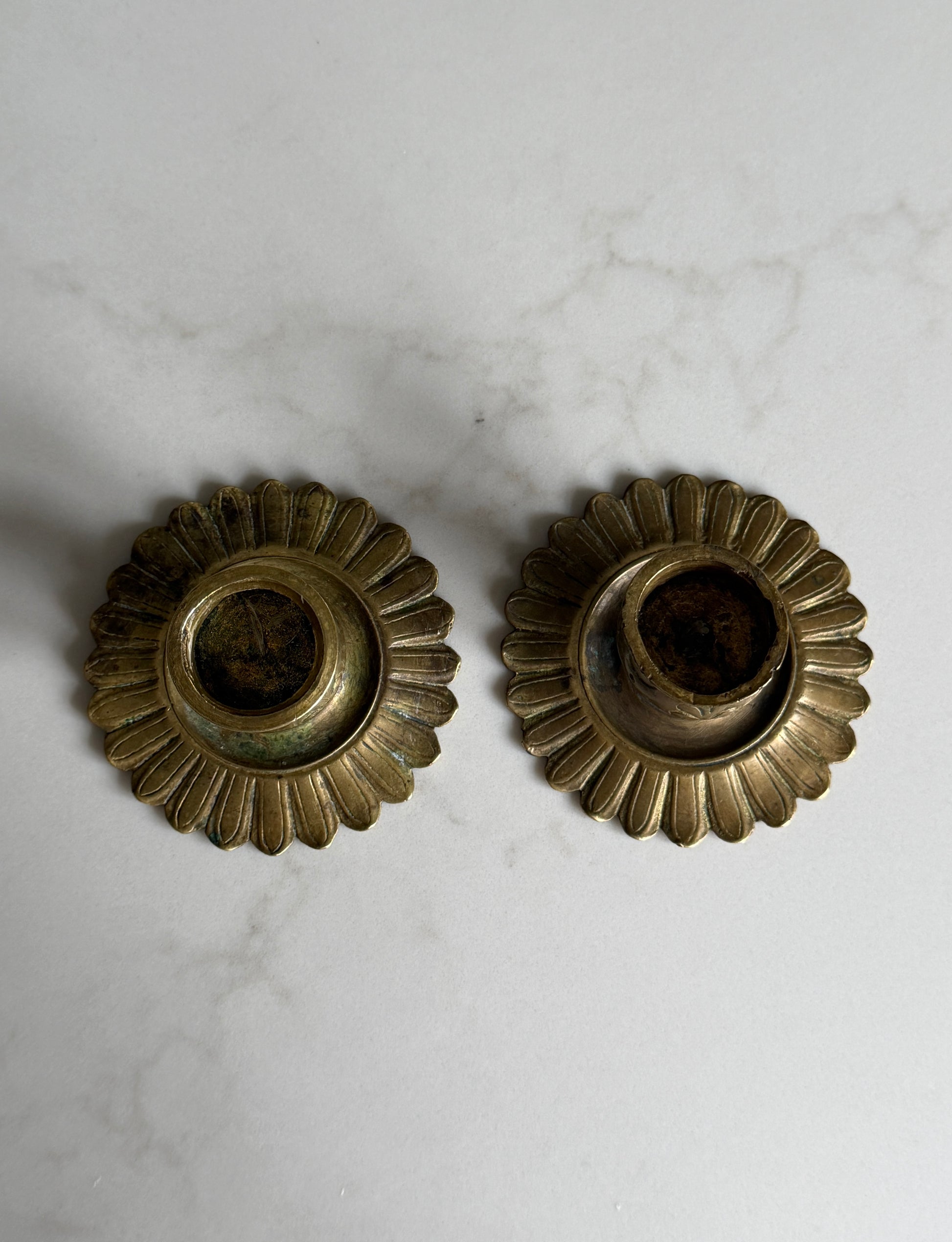 Pair of Antique Brass Candlestick Holders with Petal Detailing