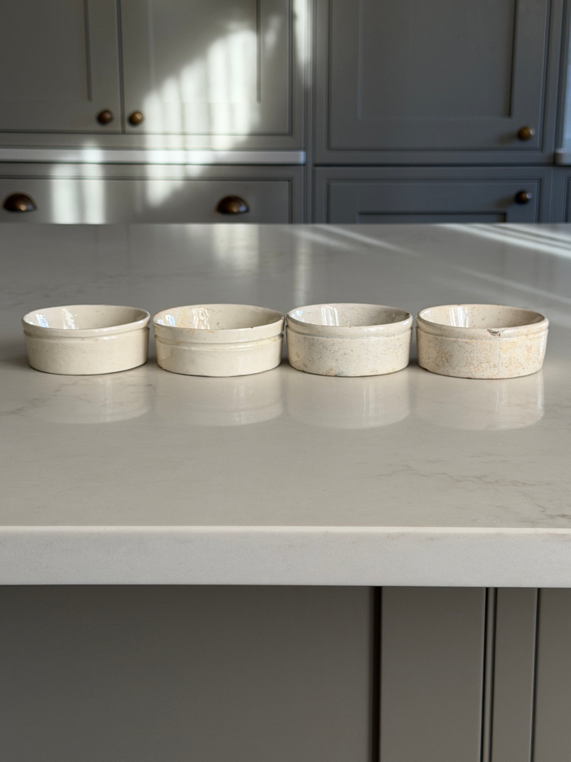 A selection of classic Victorian stoneware dishes - there are 4 available, all one-of-a-kind, with variations to their aged patina and tones.