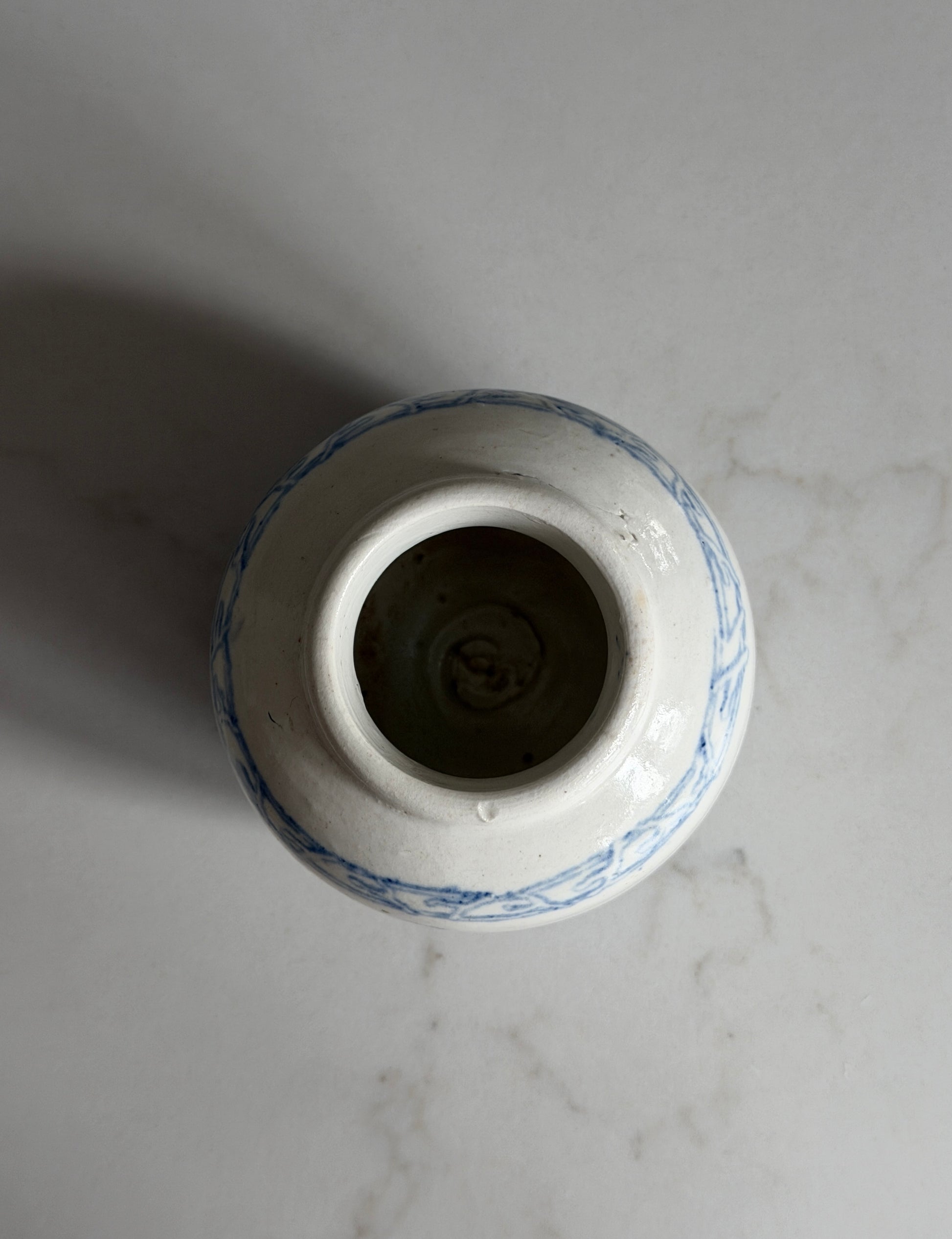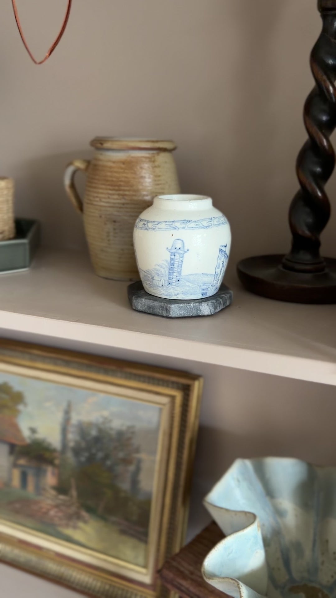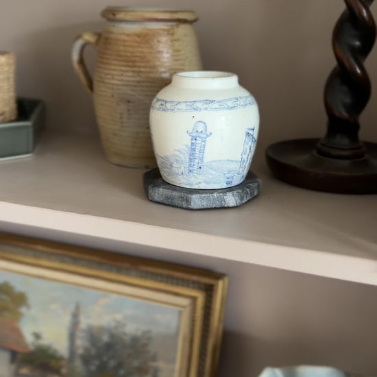 A classic blue and white ginger jar with beautiful texture and soft, muted blue tones that offer just the right amount of colour. The design is detailed yet understated, making it a versatile piece that blends seamlessly into both neutral and more layered interiors.