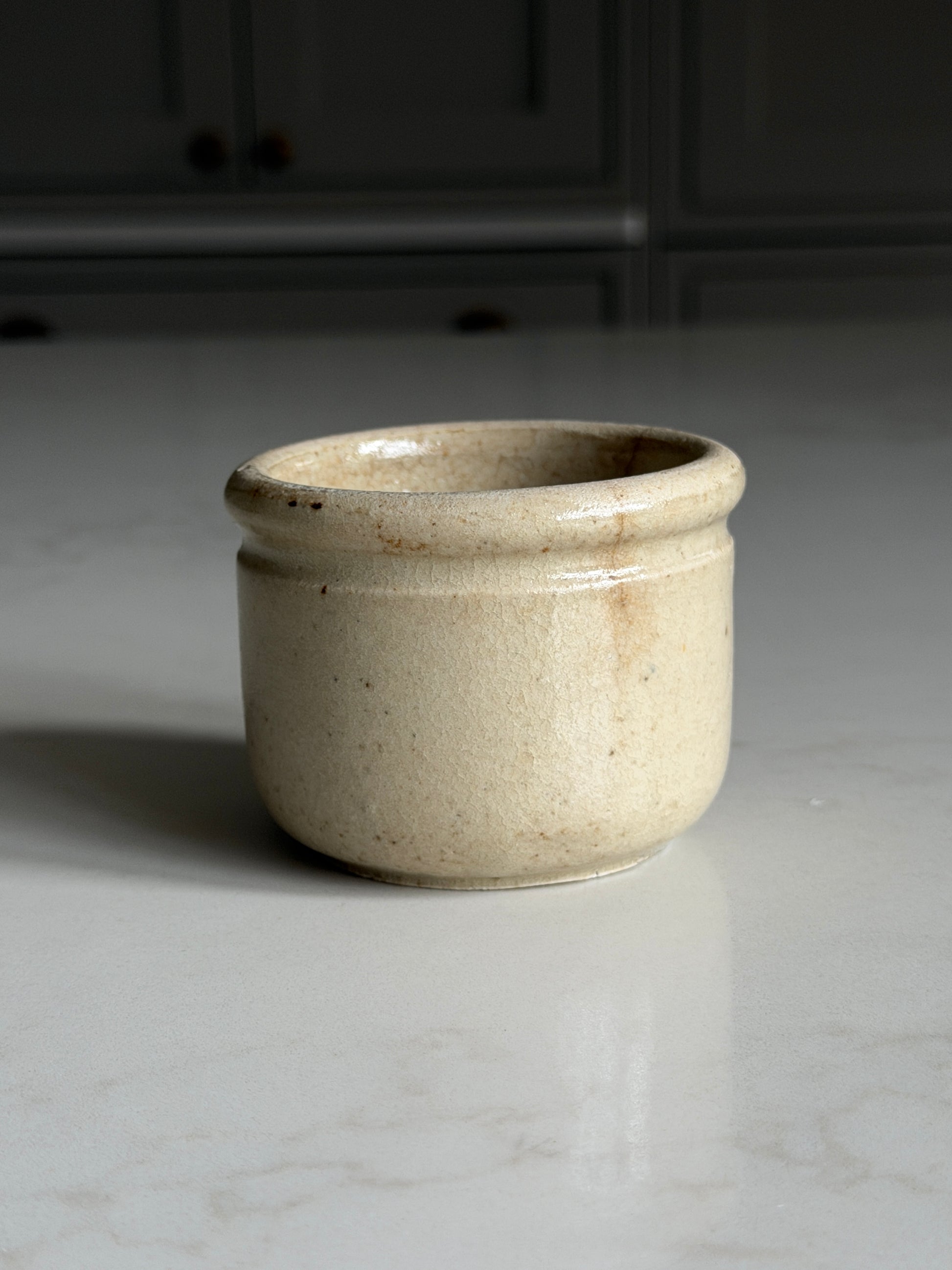 Each pot has slight variation in glaze tone and patina, making them versatile pieces for styling in any interior. Ideal on a shelf, to hold matches, or for serving condiments on a considered tablescape.