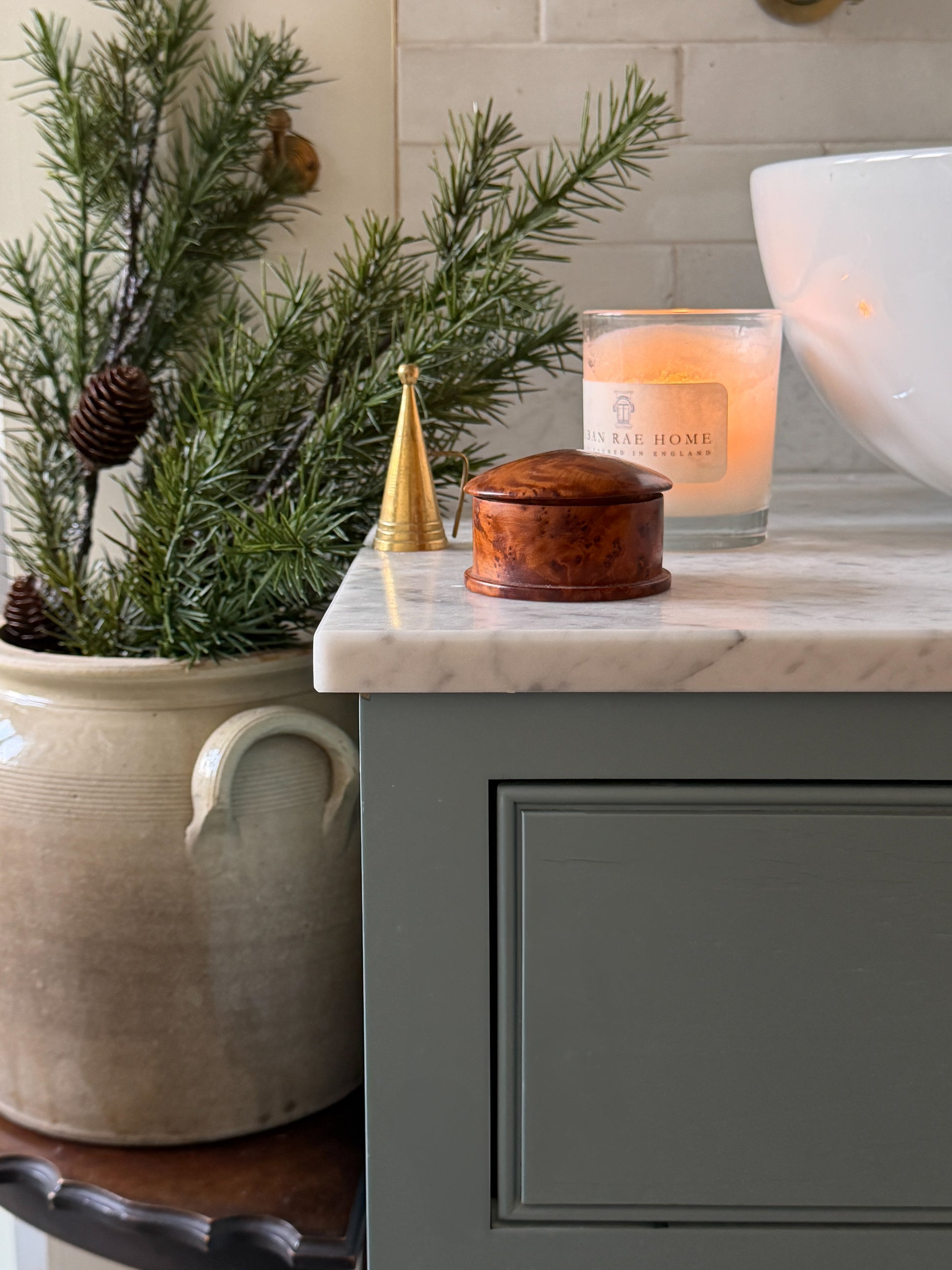A beautiful XS lidded burlwood pot. This piece has the most stunning dark brown tones and textures, adding contrast to your space and making it a real focal point.